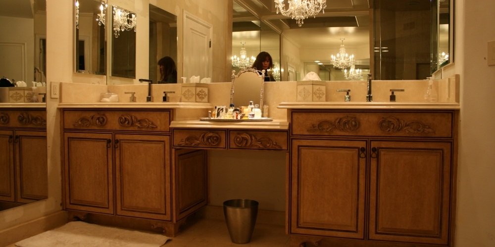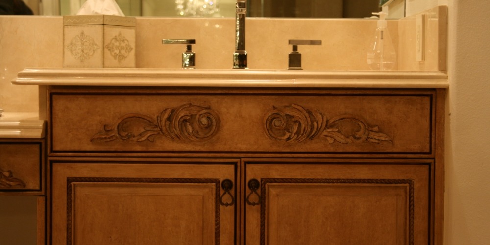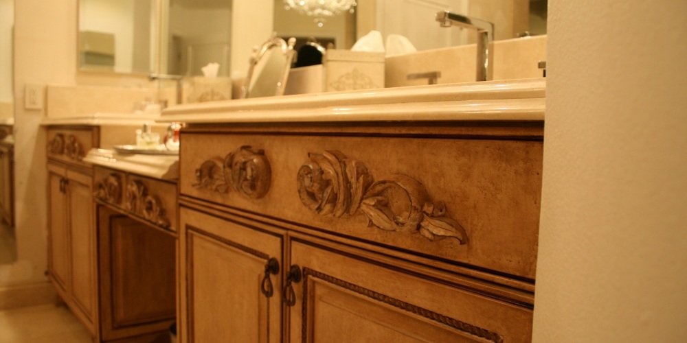 This detailed kitchen and bath remodel transforms average spaces into elegant and traditional European-inspired spaces with modern enhancements.