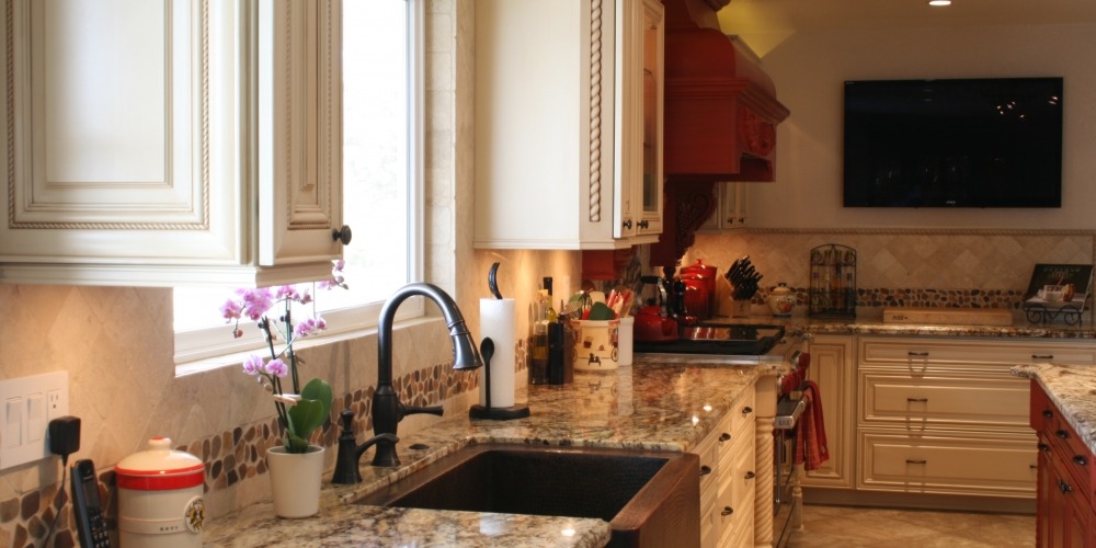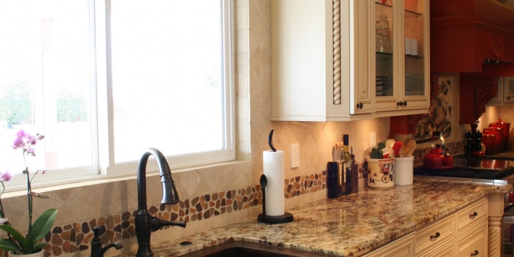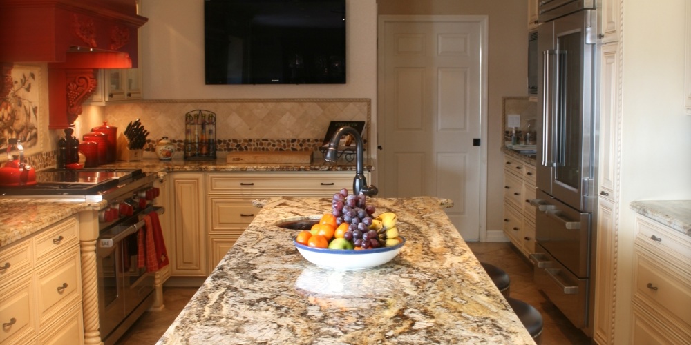 This kitchen remodel featured the inclusion of rare and unique Brazilian Betularie granite countertops, which are both gorgeous and functional with scratch and stain resistance.