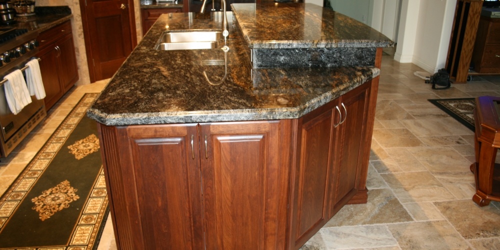 For this stunning kitchen remodel, we used Philadelphia travertine for the flooring and Cosmos granite for the countertops.